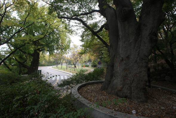 서울 남산 옛 중앙정보부 건물로 가는 길에 느티나무 두 그루가 서 있다. 두 나무 사이의 터가 통감관저 자리다. 한겨레21 윤운식 기자