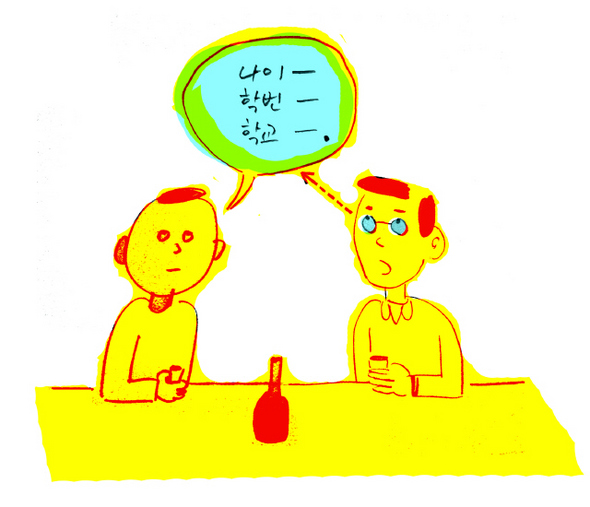 사람에 따라 다르겠지만 나이를 알면 재빠르게 상하 위계가 결정돼서 편할지도 모른다. 학교를 알면 더 편리하다. 출신대학이나 재학 중인 대학을 아는 것만으로 초면의 상대가 고등학교 때 어느 정도 성적이었는지까지 가늠할 수 있다. 거기에 더해 살고 있는 곳을 알면 생활수준이나 형편까지 예측할 수 있으니 나이, 학교, 사는 곳을 알면 초면에 알 건 다 아는 것일 수도 있다. 단박에 나와의 공통점과 차이점은 물론이고 위계 정도까지 추려지니 그 효율이 대단하다. 그 정도의 상대방 정보에서 출신학교가 같다거나, 하다못해 같은 지역에서 학교를 다녔다거나, 비슷한 학과라는 것을 찾게 되면 곧바로 ‘친근 모드’로 진입하게 마련이다.