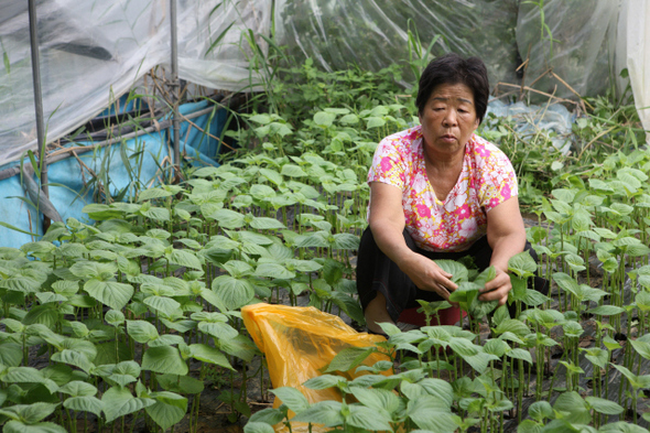 자전거길과 공원부지로 편입되지 않은 땅이 조금 있지만 4대강 공사로 그 땅값이 오른다 해도 탐탁지 않다. 물에 잠기지 않은 텃밭을 일궈 자리를 잡은 게 벌써 40년째다. 그저 바라는 건 힘이 남았을 때 농사를 계속 하는 것이다. 유기농이 뭔지도 모르던 시절부터 그들은 농약 없이 작물을 키웠다. 서른 매듭까지 자라 어른 허리에 닿을 만큼 자랐어야 할 깨가 올해는 무릎에도 닿지 않는다. 하늘도 도와주지 않아 올 봄 냉해에다 여름 일조량까지 적어 평년의 절반도 자라지 않은 것이다. 이흥교 할아버지는 “날씨도 궂었지만 마음이 떠나니까 정성이 부족해서 그런 것 같다”며 한숨만 쉰다. 올해 추석, 채소값은 천정부지로 올랐지만 정작 할아버지·할머니가 손에 쥔 돈은 파종한 비용도 안 된다.