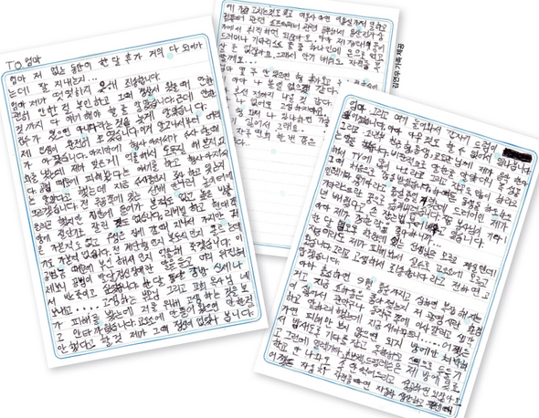 김연우는 화성교도소 수감 중에 부모에게 억울함을 호소하는 편지를 보냈다. 지난해 9월이다. 김연우는 “아버지가 너무 많이 울어서 썼다”고 말했다.김연우 가족 제공 (※클릭하시면 더 크게 보실 수 있습니다.)
