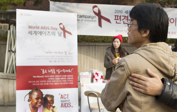 케어’가 세계 에이즈의 날 캠페인을 벌이는 모습을 그가 지켜보고 있다.한겨레 김정효 기자 hyopd@hani.co.kr