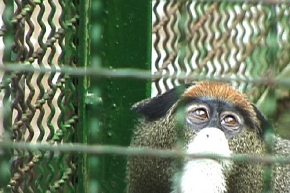 국내의 한 동물원에서 철창 너머를 바라보는 원숭이. 동물원에 갇힌 야생동물의 삶에 관한 다큐멘터리 영화 <작별>의 한 장면이다.황윤 제공