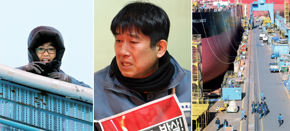 이들에게 해고는 목숨을 끊어내는 아픔이다. 강성형(가명)씨는 “내가 바로 정리해고된 사람들의 미래”라고 말하는 50대 노동자다. 강씨는 2009년 정리해고 방침이 결정되자 희망퇴직을 신청했다. 통상임금 기준으로 1년치 월급을 한꺼번에 받았지만 1억원이 안 되는 돈으로 할 수 있는 일은 없었다. “치킨집 할 돈도 되지 않아” 택한 건 “다시 조선소 용접 일”이었다. “20년 넘게 조선소에서 용접하던 사람이 다른 할 일이 뭐가 있겠어요.”