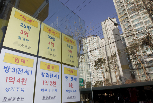 2월9일 오후 서울 송파구 잠실의 한 부동산중개업소 앞에 임대 물량 안내문이 붙어 있다. 한겨레21 김정효