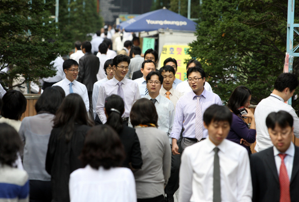직장은 공기업·대기업·중소기업·외국계 기업, 직급은 평사원, 직장인의 꽃이라는 대리, 과장·차장·부장·임원으로 서로 갈렸지만 그들의 애환은 비슷했다. 529명 가운데 2010년도 인사평가 결과를 받아봤다는 이들은 313명이었다. ‘인사평가 결과에 만족한다’가 175명(55.9%), ‘불만족스럽다’가 138명(44.1%)이었다. 반은 웃고 반은 찡그렸다. 4·27 재보선 결과처럼 ‘반반’은 우리 사회의 황금비가 돼가는 듯하다.