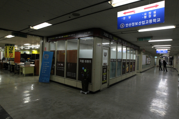 경기도 안산의 A고. 대형 할인마트 안에 이벤트 회사, 사무용 가구 업체와 함께 섞여 있다. 교육청은 지난 3월 대대적인 감사를 벌여 학교 예산·결산 보고서 위·변조 등을 적발했으나 경고 처분에 그쳤다.