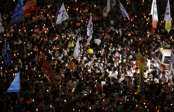지난 6월10일 서울 청계광장에서 열린 ‘반값 등록금’을 요구하는 촛불문화제. 촛불집회는 다시 돌아온 ‘신들의 사회’의 한 단면으로 평가된다. 한겨레 김명진