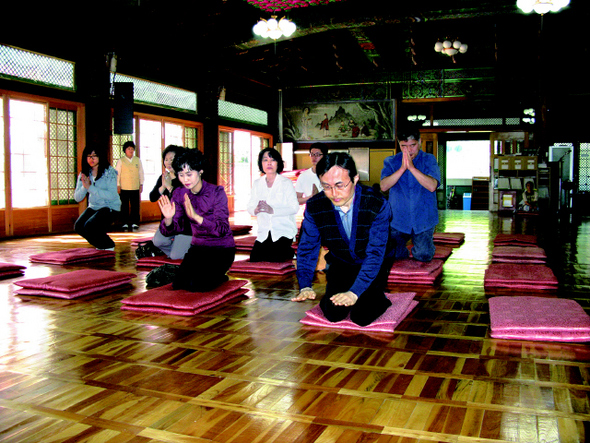 ‘작은 교회’를 지향했던 예수 동아리 교회 사람들이 기독교인들이 불교에 대해 행했던 무례한 일을 뉘우친다는 뜻에서 2009년 서울 수유동 화계사 법당에서 108배를 올리며 주일예배를 진행했다. 미디어 붓다 제공
