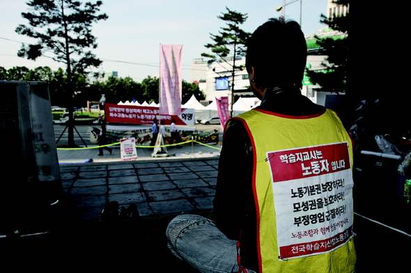해고자들은 서울 혜화동 재능교육 본사 옆에서 천막농성을 벌이다 지난해 11월7일 노동자대회 때 지금의 서울시청 앞으로 이사를 왔다. 서울시청 앞 생활도 벌써 1년이다. “상황은 대학로에서 농성할 때보다 지금이 나아요. 집회 신고를 내려고 혜화경찰서 앞에서 96시간을 서서 기다린 남자 조합원도 있었어요. 한자리에 서서 먹고 자고 싸고 다 했죠. 자리를 비우면 회사에서 고용한 사람들이 자리를 차지한 뒤 집회 신고를 해버려 자리를 비울 수 없었어요. 그리고 그때는 회사 쪽에서 용역깡패를 동원해 폭행과 성적 폭언을 일삼았는데 이곳으로 오니까 보는 눈이 많아서인지 그렇게 대놓고 하지는 못하더라고요.”