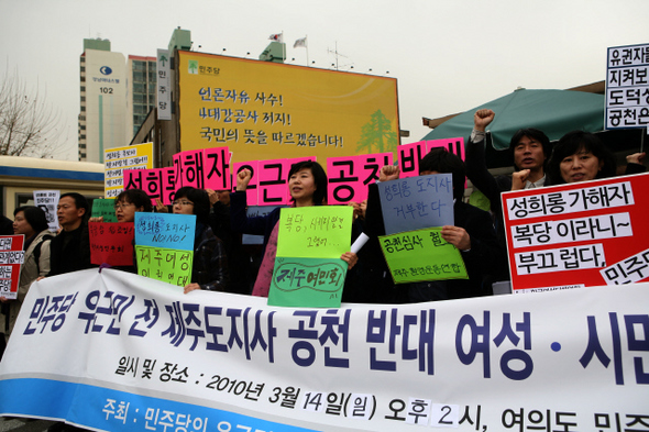 [%%IMAGE2%%] 아무리 봐도 우근민 지사님, 추장을 꿈꾸신 것 같습니다. 2002년 2월 집무실에서 여성 직능단체 간부를 성추행한 혐의가 대법원에서 확정됩니다. 그래도 2010년 민주당에 복당됩니다. 탈당해서 6·2 지방선거 때 당선됩니다. 20여 년 전 섬소년이 꿈꾼 추장이 된 겁니다. 육짓것들의 오리엔탈리즘적 우문에 시달리다 보니 자연스레 오리엔탈리즘에서 벗어난 섬소년은 생각합니다. 우근민 지사도 추장을 꿈꾸셨던 게 틀림없습니다. 중문관광단지 매각 반대 행정이나 해군기지 건설 갈등 치유 같은 큰일엔 관심이 별로 없으시다죠. 대신 여자 문제엔 민감하십니다. 최근 확대간부회의에서 “일본 아오모리현에 가봤더니 ‘사과 아가씨’가 있었고, 우리나라에는 ‘인삼 아가씨’ ‘고추 아가씨’ 등이 있는데 왜 ‘제주 감귤 아가씨’는 없어졌는지 모르겠다”며 “관련 부서에서 대회 개최를 검토하라”고 지시했다죠. 없어진 지 5년 넘은 대회를 부활하라! 젊은 여성들의 감귤 같은 몸매를 평가하자! 지역 시민단체가 발칵했습니다.