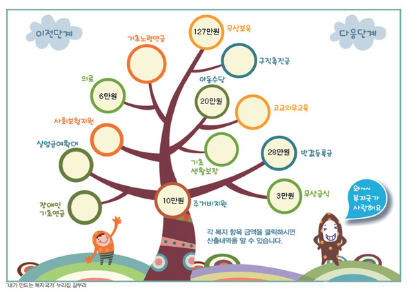 지난 2월 결성된 시민단체 ‘내가 만드는 복지국가’(이하 내만복)도 이게 고민이었나 보다. 사람들에게 복지 효과를 설명하기 위해 간단한 프로그램을 만들었다. 이름하여 ‘복지 체험 프로그램’이다. 누구든 자신의 처지, 이를테면 가구원 수, 소득수준, 주거 형태 등을 입력하면 현재 자신이 누리는 복지 혜택과 미래 복지국가에서 받을 것으로 기대되는 혜택을 비교해서 살펴볼 수 있도록 했다.