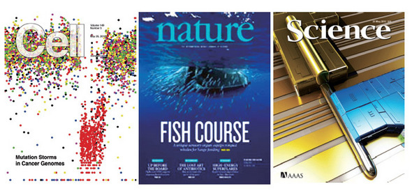 과학계에서 영향력이 높은 세계 3대 과학저널은 영문 앞글자를 따 ‘NSC 저널’이라고 부르기도 한다. 왼쪽부터 <셀><네이처><사이언스>의 표지