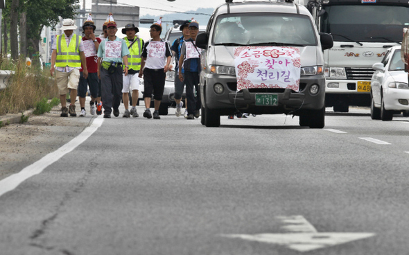 풍산마이크로텍(현 PSMC) 노동자들이 정리해고와 비정규직 없는 세상을 향해 지난 5월30일 부산을 출발해 서울로 ‘700km터 국토 대장정’에 나섰다. 발바닥에 불이 날 정도로 더운 이 여름에 이들이 대장정을 선택한 이유는 무엇일까. 이들의 사연을 들으면 기가 막힌다.