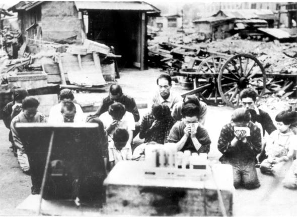 1945년 8월6일 일본 히로시마에, 8월9일 나가사키에 각각 원자폭탄이 떨어졌다. 완강하게 버티던 대일본제국은 8월15일 항복을 선언하고 무너졌다. 그리고 2천만 명의 아시아 사람들과 약 300만 명의 일본인을 죽음으로 내몬 전쟁이 끝났다. 일본은 1952년 샌프란시스코조약에 의해 독립될 때까지 7년 동안 미군 점령을 경험한다. 대일본제국의 붕괴와 ‘신생 일본’의 출범. 역사적 전환점이 된 8월15일을 일본에선 ‘종전기념일’이라 한다. 패전이라 하지 않고 종전이라 하는 것에 일본 정부의 공식 역사관이 드러난다. 그래서 매년 8월이면 일본의 미디어는 각종 특별 프로그램을 내보낸다. 올해도 그럴 것이다. 그런데 이때 빠짐없이 등장하는 단골 메뉴 몇 가지가 있다. 그중 하나가 바로 ‘항복 선언문’을 낭독하는 히로히토의 목소리다.