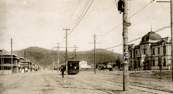 1920년대 초의 신용산. 현재 지하철 4호선 신용산역 주변이다. 오른쪽 건물은 용산우체국이다. 이 길의 동쪽은 군사기지, 서쪽은 철도기지였다. 일제는 신용산을 만든 직후 남대문에서 갈월동·남영동을 거쳐 한강으로 이어지는 도로를 대대적으로 확장했는데, 이 도로의 주된 목적은 ‘유사시’ 대규모 일본군 병력을 신속히 도성 안으로 진입시키는 것이었다. 전우용 제공