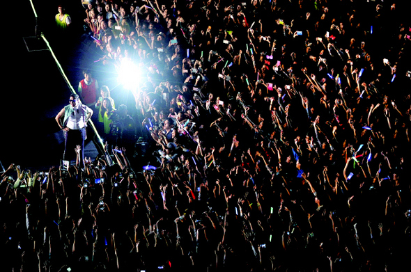 글로벌 히트와 애국적 호응 사이의 줄타기, 싸이는 능수능란한 운신으로 영광과 실익을 양손에 쥐었다. 10월4일 서울광장에서 공연을 하고 있는 싸이. 사진 김명진