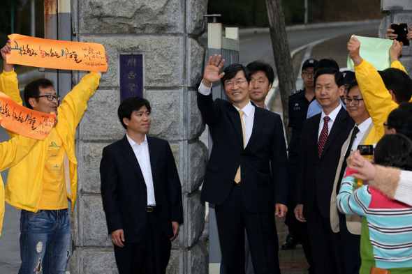 곽노현 전 서울시 교육감이 지난 9월28일 경기도 의왕시 서울구치소로 들어서고 있다. 그에 대한 대법원 선고는 정치재판의 새 전형으로 받는다. 한겨레 이정아