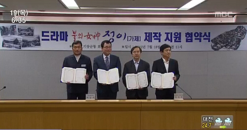 부산MBC가 제작하는 드라마 <불의 여신 정이>(가제) 세트장은 부산시ㆍ기장군 예산과 한국수력원자력의 기장군민 지원금으로 지어질 예정이다. 부산MBC와 부산시, 기장군, 고리1호기 합의사항 추진위원회 등은 7월 18일 이런 내용을 포함해 제작 지원에 관한 기본 협약을 체결했다.