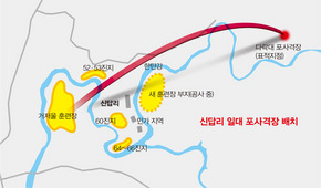 10월31일 오후, 한바탕 소동이 벌어진 연천군 전곡읍 신답리 일대는 육군 6군단의 포격 훈련장이 밀집한 곳이다. 한탄강이 길게 남쪽으로 굽이 돌아 흐르는 이 마을엔 52, 53, 60, 64진지 등의 6개 포진지가 있다. 강 건너 서쪽의 거저울 훈련장에 5개 포진지가, 동쪽의 꽃봉 훈련장에 비슷한 규모의 포진지가 있다. 마을회관을 중심으로 반경 2km 안에 20개에 가까운 포진지가 마을을 동서남북으로 에워싼 형세다. 육군 제6군단에 소속된 3개 사단과 1개 포병여단이 사용하는 이 훈련장들을 통칭해 ‘다락대 포병사격장’으로 부른다. 모든 진지에서 발사하는 포탄의 표적지점이 종자산(해발 642m) 자락의 다락대여서 그렇다.
