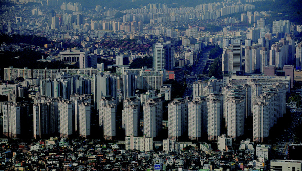 2012년 3월 현재 연소득의 60% 이상을 부채 상환에 쓰는 가구가 56만9천 가구로 집계됐다. 주택담보대출을 받은 100가구 중 12가구꼴이다. 이들은 주로 수도권에 사는 40∼50대 자영업자다. 이 가운데 주택담보대출비율(LTV)이 상한선(60%)을 넘어서고 대출금이 보유 자산보다 많은, 사실상 ‘깡통 주택’ 소유자만 10만1천 가구로 나타났다. 사진 청와대사진기자단