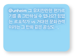 진중권은 트윗놀이를 어떻게 할까? ‘사망 유희’라는 이름이 붙여진 변희재와의 토론 배틀을 앞두고 그가 트윗에서 문제의 ‘뵨’을 어떻게 기선 제압하는지 궁금해 지난 일주일간 그의 트윗놀이를 따라가보았다. 파워 트위터답게 그가 상대하는 사람과 이슈들은 실로 다양했다. 변희재와의 수사적 설전뿐 아니라 최근 문재인·안철수 야권 후보들의 단일화 정국에 대해 제법 진지한 훈수까지 두며 대선 정치에서 범진보 진영의 통 큰 연대를 제안하기도 한다. 물론 이것에만 그치지 않는다. 김재철 MBC 사장 해임안에 대한 청와대와 새누리당의 개입설, 박근혜의 <뉴스타파> 취재진 격리 소식에 대한 비판적 멘트를 팔로어들에게 전한다. 수능을 앞둔 학생들에게 따끔한 한마디, ‘수꼴’ 트위터들과 의 지루한 설전도 잊지 않는다.