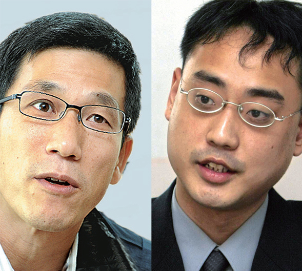 진중권(왼쪽)씨에 대한 변희재씨의 싸움 걸기는 끝이 없다. 최근 ‘사망유희’ 배틀에서 이들은 또다시 만났다. 사진 한겨레 자료, 한겨레 이정용 기자