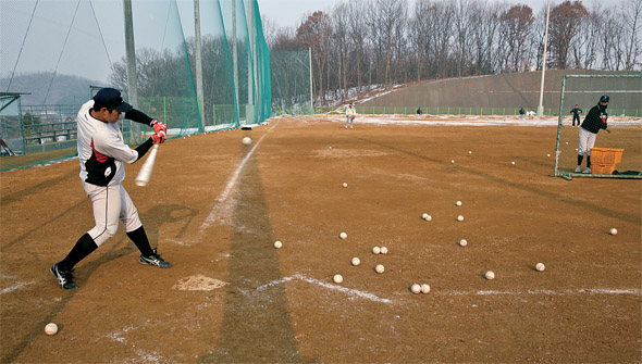 지난 1월 경기도 의정부시 녹양동 생활체육 야구장에서 상우고 야구부 선수들이 훈련을 하고 있다. 한겨레 탁기형 기자