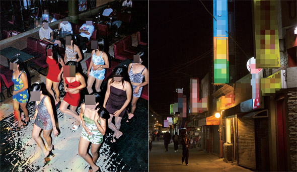 지난 3월5일 인신매매죄를 신설한 형법 개정안은 미국 국무부의 인신매매 평가에서 최고 등급인 1등급을 유지하기 위한 제스처에 불과하다는 의심을 받고 있다. 예술흥행(E-6) 비자를 받고 외국인 전용 클럽에서 일하는 외국인 여성들의 모습(왼쪽). 경기도 동두천시 클럽 거리. 한겨레 박승화 기자