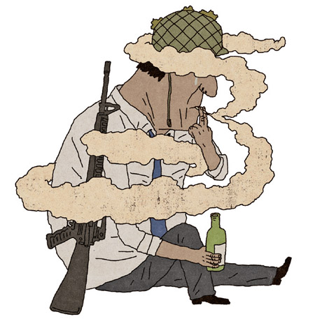 고깃집에서 나올 때 냄새제거제를 잘 뿌리고 잘 씻고 특히 양치질을 꼭 잘하시라고 권하기 위해 이 글을 쓰는 것은 아니다. 자기관리에 실패한 중년 남성을 비난하는 것으로는 이 생화학적 문제의 진실을 결코 발견하기 어렵다. 중년 남성이 늦은 밤 아내 옆에서 풍기는 이 혐오스러운 냄새의 사회학적 실체란, 그가 참전한 또 하루의 전쟁터에서 묻혀온 화약과 총상의 냄새이며, 그 상처를 응급처치하기 위해 들이켠 ‘소독용’ 알코올의 냄새인 것이다. 그러니까 아내가 동침을 회피하며 내세우는 성적 욕망의 감퇴는 사실 연기에 가깝다. 그녀는 냄새 때문이라는 즉물적 진실을 차마 말하지 못한다. 그것은 전장에서 잠시 귀환한 부상병에 대한 모욕이라는 것을 그녀 자신이 아주 잘 알기 때문이다.