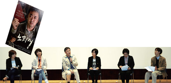 영화 개봉을 계기로 성접대 문제가 다시 주목받고 있다. 포스터(왼쪽). 한국여성단체연합 주최의 토론회에 참석한 이들이 영화 상영 뒤 성접대 근절을 위한 토론을 벌이고 있다. 한겨레 김명진 기자