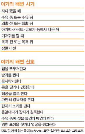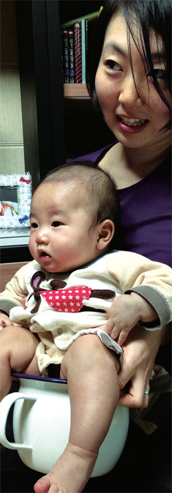 일본 니가타현 출신으로 한국인 남편과 인천에 사는 이즈카 사야카(34)는 4개월 된 아들 래온이를 냄비 모양 변기 위에 올려놓고 노래를 불러줬다. 자신이 만든 이 노래를 서너 차례 부르더니 사야카는 “지금 한 것 같은데…”라고 중얼거렸다. 래온이 엉덩이를 들어보니 변기 속에 ‘응가’가 있었다. 사야카는 빙긋 웃음을 짓더니 래온이가 앉은 상태로 변기를 들어 화장실로 갔다. 엉덩이를 씻고 엄마 품에 안겨 돌아온 래온이는 한결 개운한 듯 옹알거렸다.