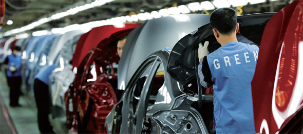 대법원이 통상임금의 범위를 확대하는 판례를 내놓았지만 정부와 기업은 이를 철저히 무시하고 있다. 임금을 제대로 받지 못할 처지에 놓인 노동자들이 결국 집단소송에 나섰다. 울산 북구 양정동 현대자동차 3공장에서 일하는 노동자의 모습. 한겨레 김태형 기자
