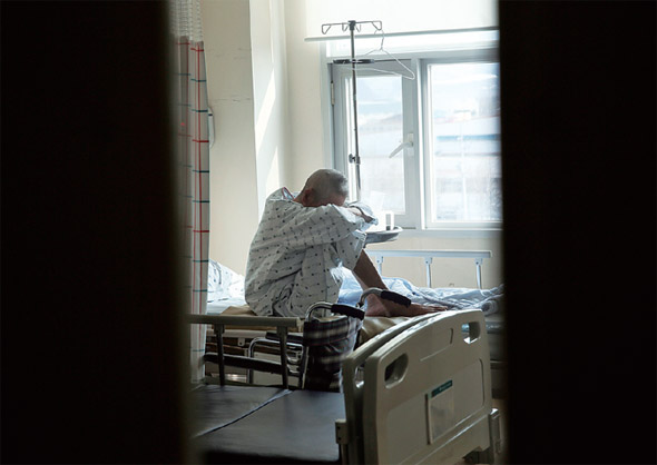 병원마다 어려운 사람을 돕기 위한 여러 가지 지원·후원프로그램이 있지만 턱없이 부족한 실정이다. 한 공공병원 입원실에 환자가 앉아 있다. 한겨레 정용일 기자
