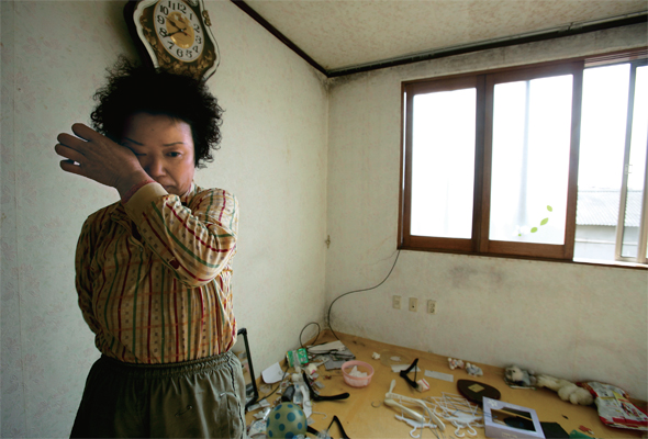 2007년 3월29일 정부와의 협상에 따라 집단이주에 나선 경기도 평택 대추리 주민이 살림살이가 빠져나간 집 안을 둘러보며 눈물을 훔치고 있다.한겨레 이종근