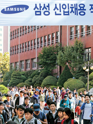 이런 바늘구멍을 뚫고 삼성에 입사했을 때 애사심이 들끓는 건 어찌 보면 당연하다. 삼성 최종합격자 발표가 있던 11월27일, 인터넷 취업 카페에 올라오는 합격자 수기를 들여다봤다. “합격시켜주신 삼성 정말 감사드립니다. 제 열정을 다 바쳐 열심히 일하겠습니다.” 한 남성이 말했다. 어쩌면 자연스러운 반응이다. 아마 삼성 입사 소식을 듣는 순간, 그의 가족과 지인의 태도부터 열광적으로 변했을 테니 말이다.