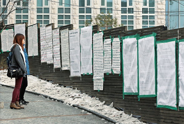 말을 가둔 철창을 뚫고 ‘안녕하냐’는 질문이 퍼지고 있습니다. 말하지 못했던 말이 용기를 내어 말들의 안부를 묻고, 말의 물음에 용기를 얻은 말들이 말의 물결을 만들고 있습니다. 고려대 학생 주현우씨의 첫 대자보(12월10일)는 물었습니다. “하수상한 시절에 어찌 모두들 안녕하신지 모르겠다”고, “남의 일이라 외면해도 문제없냐”고, “혹시 정치적 무관심이란 자기합리화 뒤로 물러나 계신 건 아니냐”고 했습니다. 누군가는 최인훈의 소설을 빌려 응답했습니다. “나는 여기저기 다니며 물어보았으나, 한결같은 얘기는 몸 성히 공부 잘해서 훌륭한 사람이 되라는 말뿐이었다. 나는 문득 깨달았다. 나는 학생이구나….”(회색인이 되지는 말아야겠습니다) 누군가는 진은영의 시를 빌려 응답했습니다. “언제부터인가 내 삶이 엉터리라는 것뿐만 아니라, 너의 삶이 엉터리라는 것도 나를 고통스럽게 한다. 너라도 이 경계를 넘어가주었으면….”(학점도 구리고 얼굴도 못생겨서 안녕치 못한 사람)