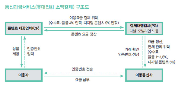 휴대전화 결제의 취소와 환불은 신용카드보다 어렵다. 황씨는 28만원을 돌려받기 위해 미래창조과학부 웹사이트를 통해 민원을 넣고, 휴대전화·ARS 결제중재센터에 중재를 요청했다. o사이트 운영사는 3개월치 결제금만 돌려주겠다는 주장을 굽히지 않고 있다. 사단법인 한국전화결제산업협회 조용태 사무국장은 “서비스 사용 내역이 아예 없는 경우, 수수료를 포함해 전액 환불 요청을 하고 있다”며 “본인 인증 기록이 있을 땐 결제대행업체나 이동통신사에 지급된 수수료까지는 환불받지 못할 수도 있다”고 말했다. ‘스미싱’ 피해를 당한 김씨는 환불을 받는 데 두 달이나 걸렸다. 경찰서에 가서 진정서와 진술서를 작성하고, 사건·사고 접수사실확인원을 발급받아 다시 이동통신사에 보내는 과정을 거쳤다. 휴대전화 결제 과정에서 콘텐츠 제공업체는 결제대행업체에 대금 일부를 수수료로 지불하며, 결제대행업체는 요금 청구를 대신하는 이동통신사에 수수료를 준다. 휴대전화 결제 과정에서 이동통신사와 결제대행업체도 수수료 수익을 올리고 있지만, 무단 결제 피해를 예방하거나 피해 소비자를 구제하는 데 소극적이다. 지난해 한국소비자원 소비자분쟁조정위원회는 스미싱으로 인해 25만원의 휴대전화 결제 피해를 입은 사건에 대해 “이동통신사는 피해자 동의 없이 결제 한도를 설정해 손해액이 커지게 했으며, 인증번호를 관리하는 결제대행업체는 불법 결제 패턴을 차단하기 위한 조치를 다하지 못했다”며 콘텐츠 제공업체뿐 아니라 이동통신사와 결제대행업체에도 배상 책임이 있다고 판단했다.