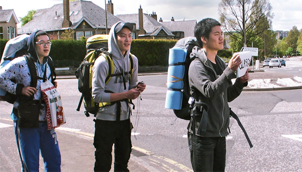 무일푼 청년들의 배낭여행기를 담은 영화 〈잉여들의 히치하이킹〉의 이호재 감독(가운데)과 친구들은 물물교환을 하며 유럽에서 1년을 보냈다. 돈 없이 서로의 필요를 주고 받는 과정에서, 그들은 가격이 아닌 다른 방식으로 가치를 책정하는 법을 배웠다.CGV무비꼴라쥬 제공
