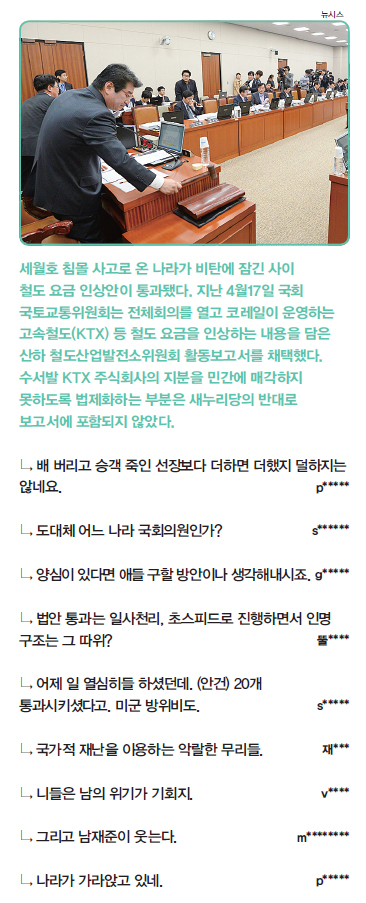 페이스북 0트위터 0공유네이버블로그카카오스토리카카오톡 공유하기스크랩프린트크게 작게 <한겨레21> 1008호 주요 기사 • [표지이야기] 처음부터 끝까지 잘못됐다 • [표지이야기] 땅끝 아무도 믿지 못하는 불신의 땅 • [이슈추적] 이런 막장드라마, 다시 없습니다 • [이슈추적] 이념적 쌍둥이 남매의 분리 불안 • [기획] 친박 ‘전멸의 경고등’ 깜박깜박 • [특집] STX의 몰락, 샐러리맨의 몰락 한겨레와 함께 걸어주세요섬세하게 세상을 보고 용기있게 기사를 쓰겠습니다.후원하기후원제 소개좋은 언론을 향한 동행,한겨레를 후원해 주세요한겨레는 독자의 신뢰를 바탕으로 취재하고 보도합니다.후원하기후원제 소개당신의 가치를 후원으로 얹어주세요평화를 갈망하는 마음, 평등을 지향하는 마음,환경을 염려하는 마음...후원하기후원제 소개����바글바글 뉴스바글바글10 바글바글10 바글바글10한겨레21 인기기사제 1585호20251027차례보기지난호보기낱권구입구독신청한겨레 인기기사