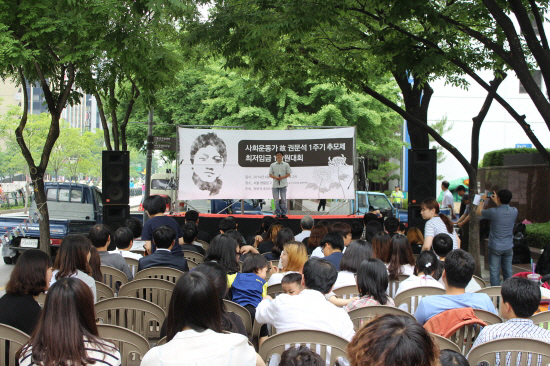 “이상과 현실의 괴리를 깨고 새로운 사회를 기획하고 싶다. 알바연대가, 아니 최저임금 1만원 운동이, 지금 당장 이뤄져야 할 최저임금 1만원이 새로운 사회의 시작이 되길 바란다.” 아빠가 첫 ‘알바데이’에 펴낸 작은 책자에 적었던 글이야. 알바노조 성공회대 지부장인 이장원 삼촌은 지난 6월1일 열린 1주기 추모제에서 아빠에게 이런 편지를 남겼더라. “문석 선배! 이제는 최저임금 1만원을 이야기해도 사람들이 어색해하지 않아요. 더 열심히 해서 반드시 쟁취해내겠습니다.”