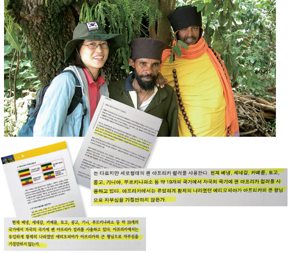 외교부가 원저작자의 허가를 구하지 않고 두 차례나 원고를 도용해 물의를 빚고 있다. 에티오피아 연구로 영국에서 박사 학위를 받은 윤오순(위 맨왼쪽) 한양대 유럽아프리카연구소 연구원이 신문에 기고한 글(아래 오른쪽)과 이를 베낀 외교부의 자료. 윤오순 제공