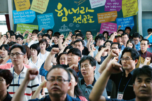 지난 6월19일, 전국교직원노동조합(전교조) 법외노조 판결 소식을 접했습니다. 얼마 뒤 교육부가 조합 전임자들에게 복귀를 명령했단 소식도 들려왔습니다. 8개월 된 쌍둥이의 기저귀를 갈고 잠투정을 달래는 중에도 이 소식들이 머릿속에 맴돌았습니다. 아랫니가 슬쩍 올라온 딸아이가 방긋 웃고 이제 막 기기 시작한 아들 녀석이 강아지처럼 온 사방을 발발거리며 다닙니다. 그 모습에 행복이란 이런 것이구나 감사해하다가도, ‘나 이렇게 마냥 즐거워도 되는가’란 죄책감이 밀려옵니다. 선생님들 때문입니다. 제가 빚을 져도 참 많이 진 전교조 전임자인 당신들은 이제 곧 해직될 운명이니까요. “가만히 있어라, 세상이 다 그렇다” 경제적 문제를 떠나더라도 해직은 크나큰 고통입니다. 당신들이 그 고통을 피할 수 있는 방법은 아주 간단합니다. 법원의 판단대로 ‘겨우’ 9명인 해직교사들을 포기하거나 교육부의 명령대로 학교로 복귀해 교사의 본분에 충실하면 됩니다. 그런데 당신들은 그 쉽고 빠르고 편안한 길을 가지 않겠다고 고집합니다.