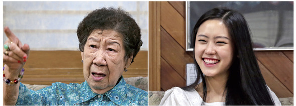 강일출 할머니(왼쪽)는 아픈 기억을 다시 끄집어내는 것에 미안해하는 취재진에게 “우리가 당한 것을 말해서 후세한테 주의를 주고 그래야지. 그래야 나라를 올바르게 지킬 수 있어”라고 말했다. 강 할머니의 실화를 바탕으로 한 영화 〈귀향〉에서 무녀 역을 맡은 최리 학생(오른쪽)은 “영화에서 기도하는 마음으로 타지에서 숨진 위안부 피해자분들의 혼을 불러내 고향으로 돌아오게 하겠다”고 다짐했다.
