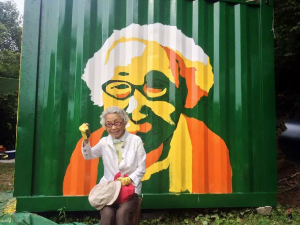 밀양에서도 공기 좋고 물 좋기로 유명한 평밭마을 컨테이너 단장은 7월6일 오전 완성됐다. 평밭마을 컨테이너 벽면에는 다른 마을과 달리 송전탑 그림이 없다. 할매·할배들의 얼굴이 원색으로 화사하게 그려져 있다. 여든다섯의 나이지만 곱고 활기차신 이사라 할머니, 단단하고 불타는 전의를 갖고 있는 한옥선 할머니, 얼굴에도 마음에도 한 점 구김 없는 이남우 할아버지의 얼굴이 평밭마을에 오는 사람들을 맞이한다. 작업을 한 이정원(25·홍익대 조소과)씨는 “늘 생활하는 일상이 될 공간이 놀이터 같고 유치원 같은 느낌이 들었으면 좋겠다. 활기를 드리고 싶었다”고 말했다. 밀양의 힘은 바로 이 강인하고 단단하고 흔들림 없는 할매·할배들이기 때문이다.