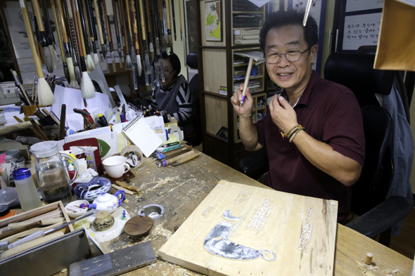 이철수는 ‘판화로 시를 쓴다’. 그는 작품을 통해 끊임없이 이야기한다. 때론 1980년대를 뜨겁게 울렸던 격정이 꿈틀대기도 하고, 때론 단순하면서도 질박한 세상살이가 담겨 있기도 하다. 요즘 이철수는 원불교의 대종경을 목판화로 옮기는 작업에 한창이다. 내년 봄까지 150개 작품을 완성해내야 한다. 작업과 농사일, 정원 가꾸기 말고는 외출도, 사람 만나기도 삼가고 있다. 독자 8만 명에게 매일 온라인 엽서로 보내고 있는 ‘나뭇잎편지’를 통해서만 세상과 소통한다. 그런 그가 설치·수리 기사들을 위한 스티커를 만들겠노라고 흔쾌히 약속하고, 집에 와서 막걸리 한잔 마시고 가라고 선뜻 청했다. 할 수 있는 한 가장 훌륭한 서비스 -바쁜데도 설치·수리 기사를 위한 재능기부에 흔쾌히 응해줬는데.