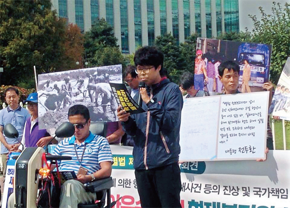 지난 9월23일, 형제복지원 피해 생존자·실종자·유가족모임 등은 ‘형제복지원 피해사건 등의 진상 및 국가책임 규명 등에 관한 법률’의 조속한 국회 통과를 촉구하는 기자회견을 국회 정문 앞에서 열었다. 이들은 27년 어둠에 묻힌 사건의 진실을 국가가 답해주길 요구한다. 형제복지원사건진상규명을위한대책위원회 제공