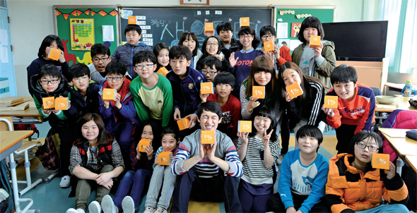 인천 서림초등학교 6학년 풀꽃반 송한별 선생님과 학생 28명은 매달 생일을 맞은 반 학생들의 이름으로 1만원씩 기부합니다. 아름다운 재단 제공