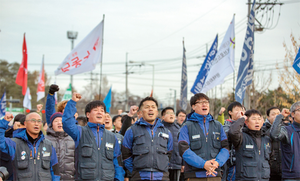 지난 11월15일 경기도 평택시 칠괴동 쌍용자동차 공장 정문 앞에서 ‘쌍용차 2천 일 투쟁문화제’가 열렸다. 이틀 전인 13일 대법원은 “정리해고는 유효”라고 판결했지만, 이날 해고노동자들은 포기할 수 없노라고 외쳤다. 박승화 기자