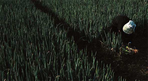 ③ ‘ㅇ들’ 없인 사장의 대파 농사도 불가능하다. 농촌에서 농사지을 사람을 구하기 어려운 까닭이다. 2003년과 2012년을 비교하면 농업노동력의 몰락을 통계로 확인할 수 있다. 9년이 흐르는 동안 농가 평균 가구원 수는 2003년 3.2명에서 2012년 2.6명으로 떨어졌다. 농가 평균 연간 농업노동 투입량은 1613시간→1204시간으로, 임시 농업 종사자 수는 0.49명→0.32명으로 감소했다. 거꾸로 1인당 노동시간은 464.2시간→1005.6시간으로 껑충 뛰었다. 가족 노동력을 최대치까지 활용해 노동인구 감소에 대응하는 방식이다. 1970~2012년 농가수·농가인구(15~65살)도 248만3천 호·743만8천 명에서 115만1천 호·165만8천 명으로 추락했다. 농업 현장에선 ‘공공근로사업 좀 안 했으면 좋겠다’는 말까지 들린다. ‘그나마 일할 사람들이 다 그쪽으로 가버린다’는 푸념이다. 이주노동자 고용신청 날마다 농업인들이 농협 앞에서 밤새 떨며 줄 섰다는 이야기도 새삼스럽지 않다.