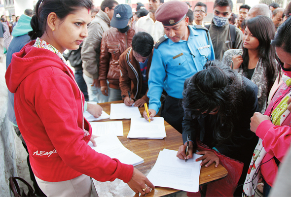 국제앰네스티가 지난 10월20일 한국 농·축산 이주노동 실태보고서를 발표한 직후 네팔 현지에서 시민들이 ‘인권밥상’ 캠페인에 참여하며 탄원서명을 하고 있다. 국제앰네스티 네팔지부 제공